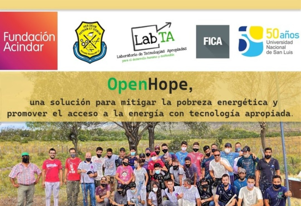 OpenHope, una solución para mitigar la pobreza energética y promover el acceso a la energía con tecnología apropiada es la iniciativa presentada en el 2023 en la Convocatoria Ingeniamos, que consiste en el diseño y construcción de un dispositivo electrónico de baja potencia para proveer de electricidad a familias rurales. Los trabajos serán realizados por estudiantes de ingenierías y escuelas secundarias de Villa Mercedes, quienes estarán bajo la supervisión de docentes de la FICA.