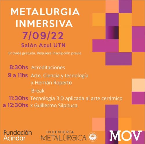 Conmemorando el día del metalúrgico, la ONG Movilizarte San Nicolás en articulación con el Departamento de Metalurgia de la Universidad Tecnológica Nacional Facultad Regional San Nicolás invitan a un encuentro en el marco del proyecto “Laboratorio y propuesta inmersiva CTIM” que acompañamos a través de la Convocatoria Ingeniamos 2022.