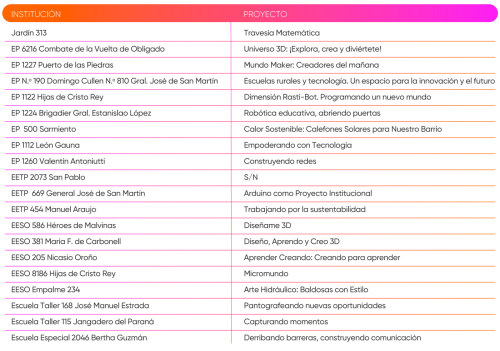 Recibimos 29 proyectos, de los cuales fueron seleccionados 20 para recibir financiamiento. Tuvimos en cuenta para la selección los criterios de evaluación detallados en las bases de la convocatoria, haciendo especial énfasis en que sean proyectos de ciencias, que busquen desarrollar habilidades asociadas con la tecnología, la matemática y las ciencias.