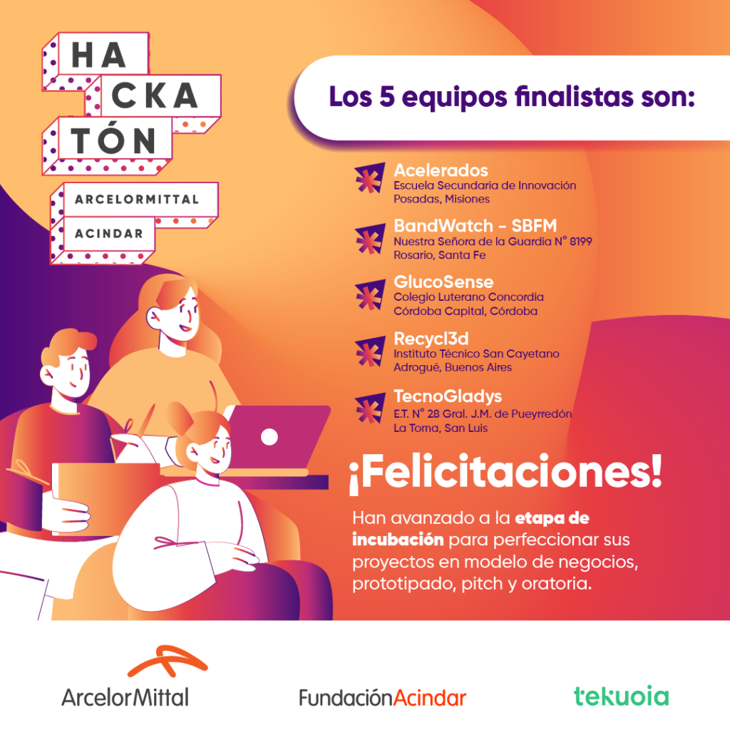 La 7ma edición de Hackatón ArcelorMittal Acindar tiene definidos sus 5 equipos finalistas, que participarán de la final en forma presencial en Villa Constitución el 20 y 21 de noviembre. Además, en este período tendrán una etapa de incubación para profundizar en sus proyectos.